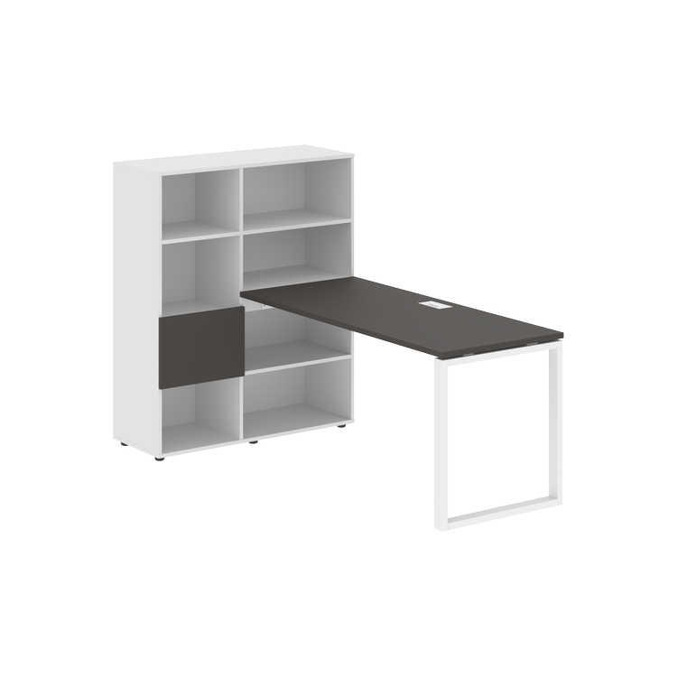 Каркасы стеллажей полностью из ЛДСП т.18 мм с кромками ПВХ т.2 и 0,45 мм, задняя стенка из ЛДСП. Комплектуется малой дверью в цвет столешницы и регулируемыми опорами h= 27 мм.