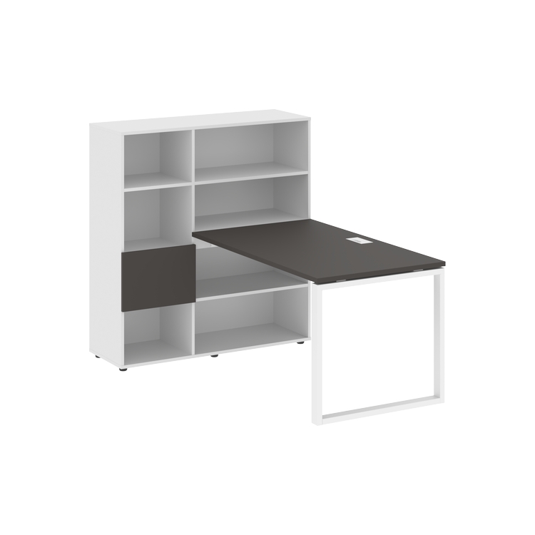 Каркасы стеллажей полностью из ЛДСП т.18 мм с кромками ПВХ т.2 и 0,45 мм, задняя стенка из ЛДСП. Комплектуется малой дверью в цвет столешницы и регулируемыми опорами h= 27 мм.