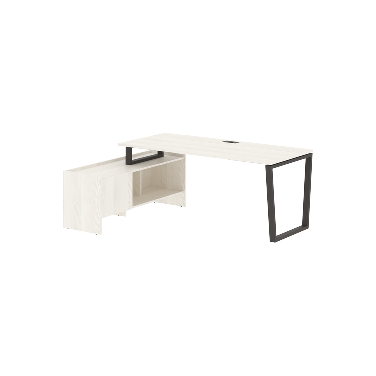 Столешница глубиной 800 мм из ЛДСП т.25 мм с кромками ПВХ по периметру т.2 мм. Комплектуется металлическим кабель-каналом габаритом 160х80х25 мм.