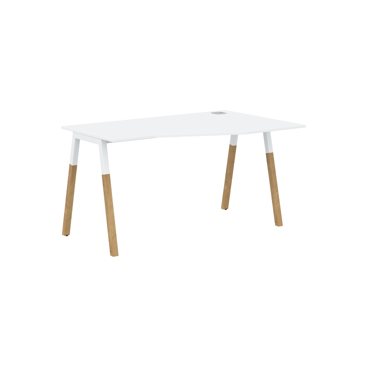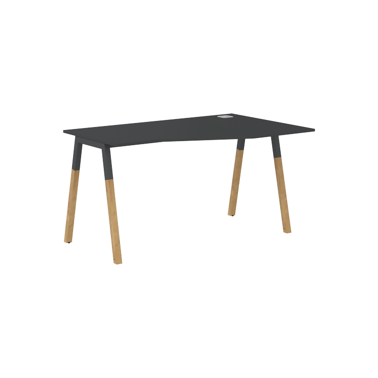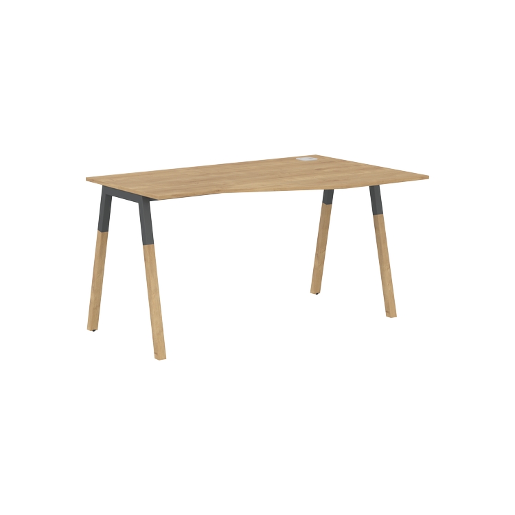 Столешница эргономичная из ЛДСП т.18 мм. c кромкой ABS т.2 мм, комплектуется квадратной заглушкой кабель-канала слева или справа, 2-мя траверсами и комбинированными опорами А-образной формы, верхняя часть из профиля трубы 40х40 мм и нижняя часть из массива бука; отделка – масло-воск.
