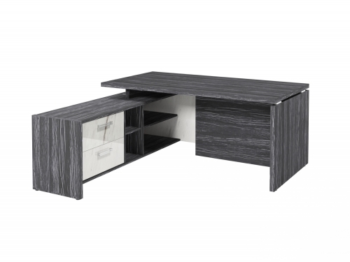 Столешница, бок стола и бок тумбы выполнены из ЛДСП толщиной 38 мм. Цвет - "Древесина Графит". Кромка 2 мм.