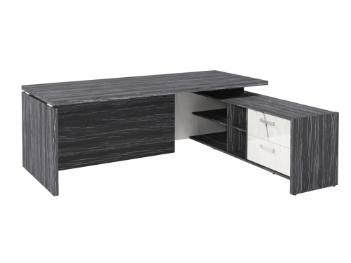 Столешница, бок стола и бок тумбы выполнены из ЛДСП толщиной 38 мм. Цвет - "Древесина Графит". Кромка 2 мм.