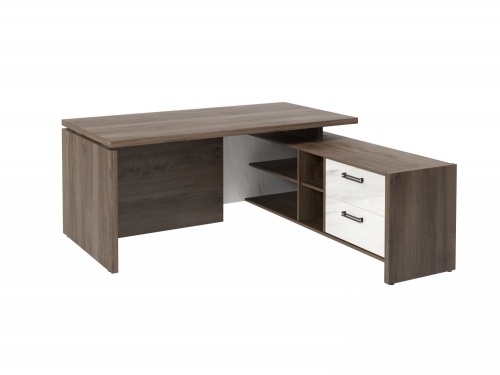 Стол с опорной тумбой FB-117R.GG (R) Орех Пацифик Табак/Мрамор Леванто белый