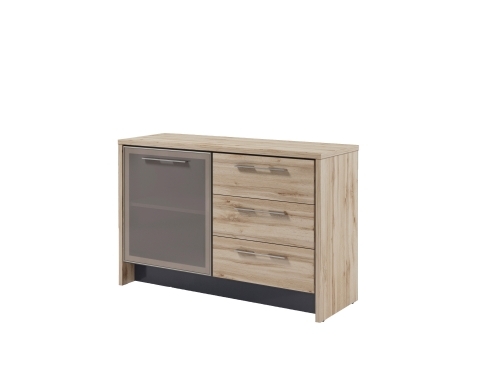 Тумба с дверью и 3 ящиками. Дверь стеклянная в алюминиевом профиле. Цвет профиля - шампань.