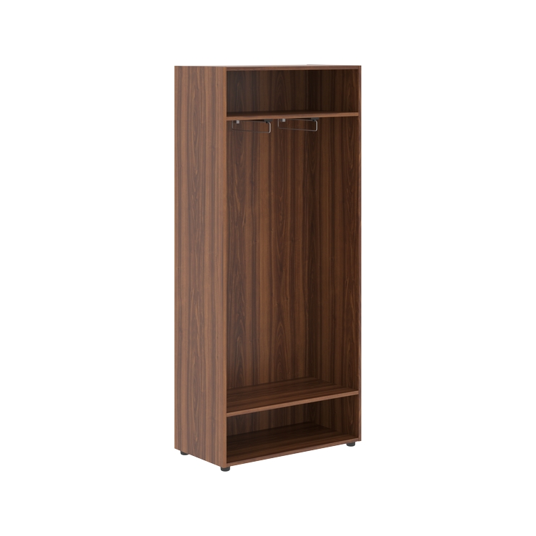 Каркас гардероба из ЛДСП т.18 мм. Задняя стенка ХДФ т.3,2 мм. Комплектуется двумя выдвижными штангами и регулируемыми опорами.